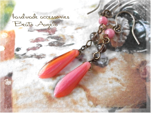 > ◆+angelo+チェコダガーとロードナイトのピアス(p-005)コーラルピンク・トパーズ AG シンプル 大人 秋