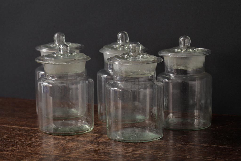 - R-039455 アンティーク雑貨 レトロ雑貨 アンティークボトル 小さな蓋付きガラス瓶5個セット(ガラスビン)(R-039455)
