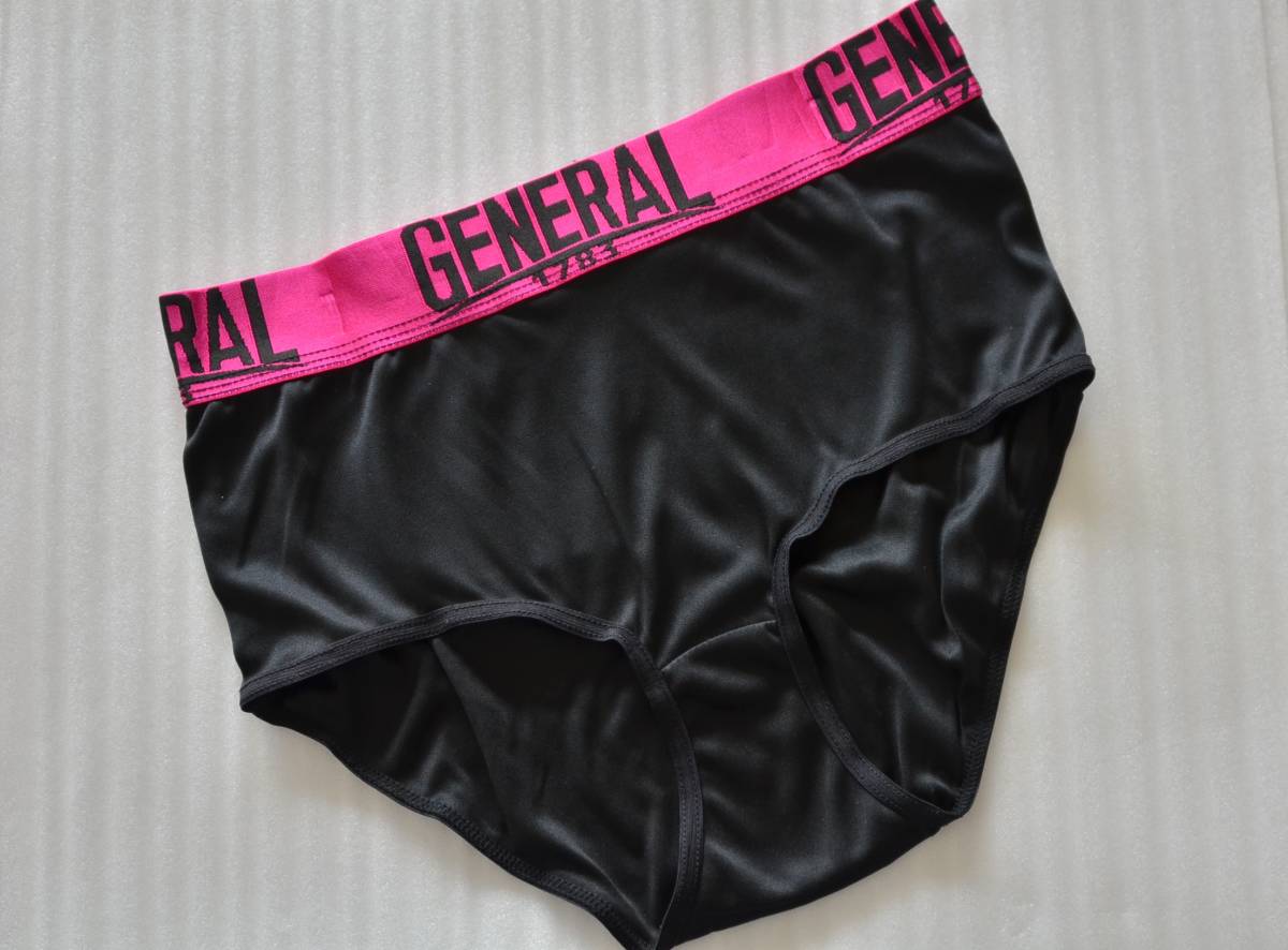 - 『送料無料』 ★GENERAL★ツルツル光沢★スタンダードショーツ ★無地 黒×ピンク★ L