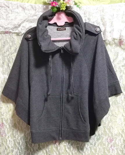 > 灰グレーポンチョ風カーディガンチュニック/トップス Gray poncho style cardigan tunic/tops