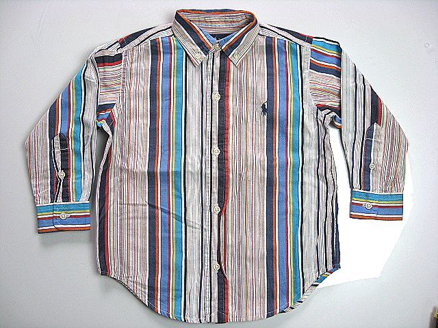 > 中古 子供服 キッズ ポロ ラルフローレン POLO RALPH LAUREN 2/2Tサイズ ストライプ 長袖シャツ スクール 秋冬服 送料510円 紺ポロ刺繍あり