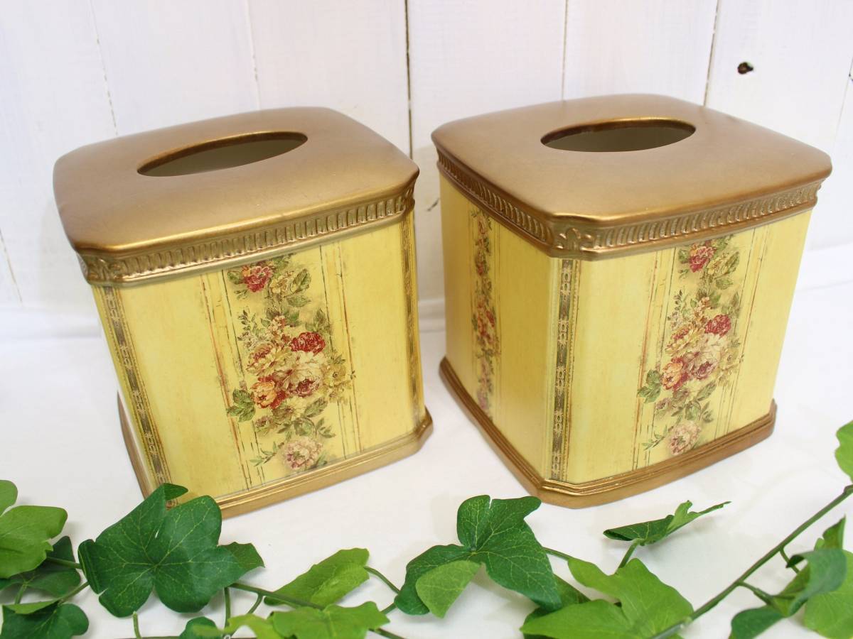 - 輸入雑貨 新品◆CROSCILL◆アンティークフラワー花柄 陶器 ティッシュカバー ティッシュケース ティッシュボックス 2点セット*