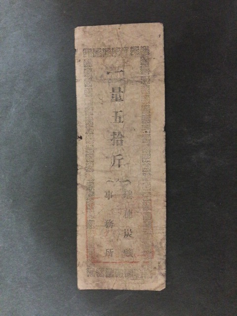 - 【注目/珍品/レア/希少/貴重】瑞穂炭坑事務所発行 炭鉱札 一量五拾斤 2