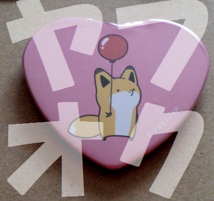 - タヌキとキツネ THEキャラSHOP 限定 ハート缶バッジ キツネ風船柄