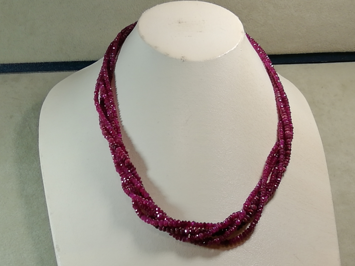 - ハイグレード天然ルビーダイアカット 175ct 5連 k14 ネックレス 8125