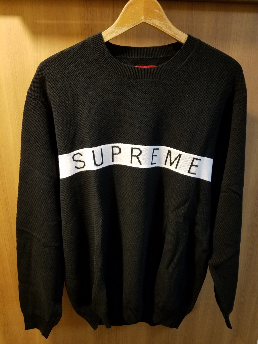 - 【新品未使用タグ付】Supreme LOGO STRIPE PIQUE CREWNECK サイズM