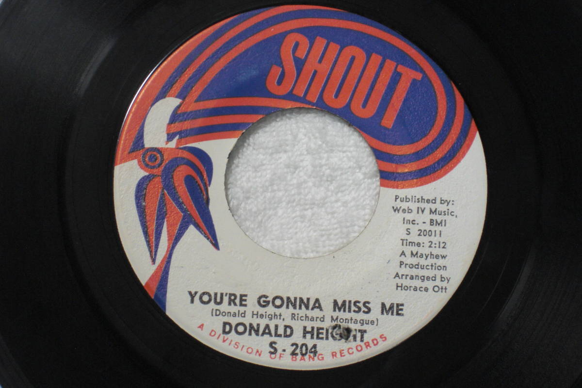 > USシングル盤45’ Donald Height : You're Gonna Miss Me / My Baby's Gone (Shout S-204) A