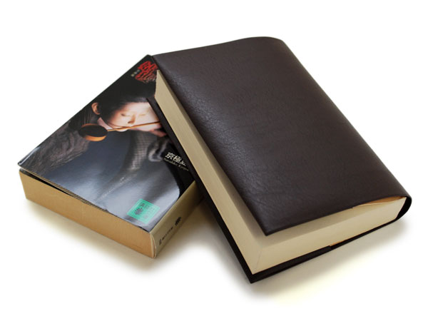 - 送料無料★お手入れいらずのリサイクルレザーで作ったブックカバー★厚めの文庫版 650ページ程度対応★チョコ