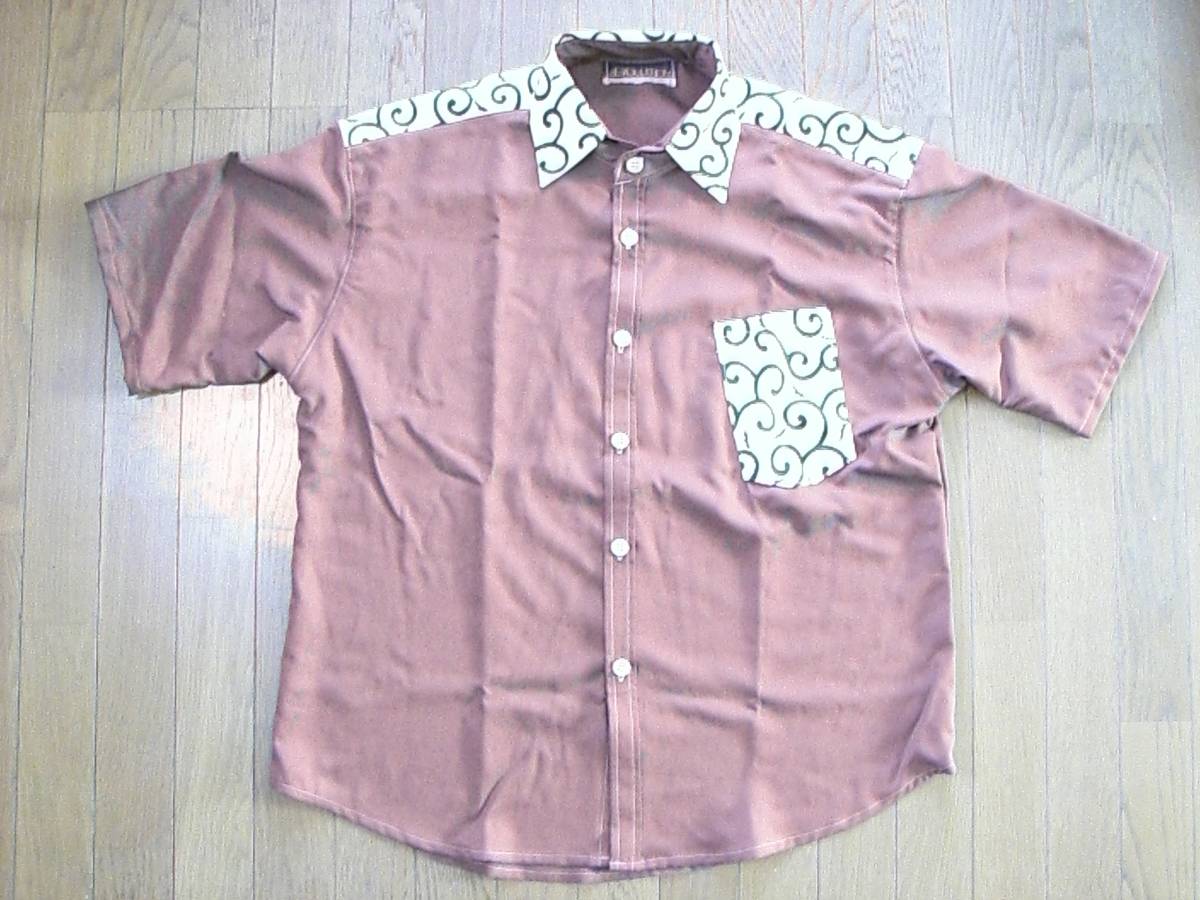 - ☆手作り☆ 唐草生地付きドレープ半袖シャツ チャ 3L~4L 新品 送無料あり