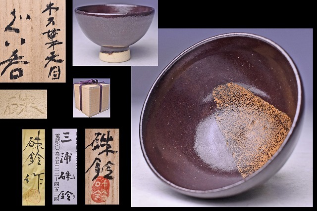 > 三浦しゅ鈴 ★ 木乃葉天目ぐい呑 ★ 共箱直筆共布栞 ★ 酒器 ★ 静岡県で富士山の溶岩や土を利用される名工 ★