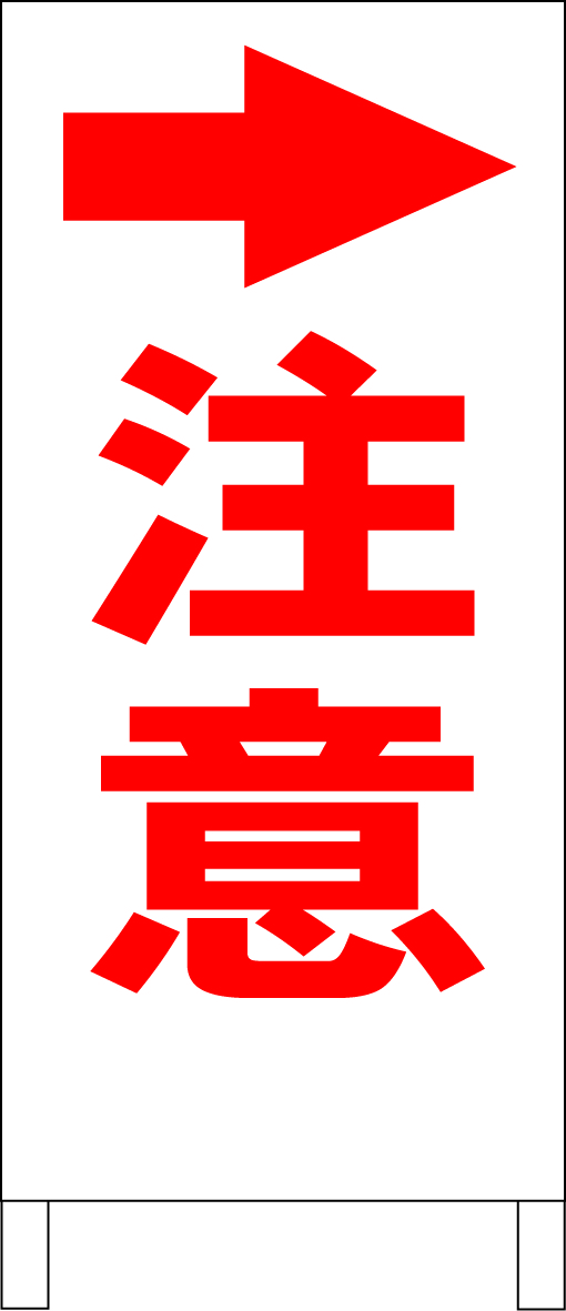 - シンプル立看板「注意矢印右(赤)」工場・現場・最安・全長1m・書込可・屋外可