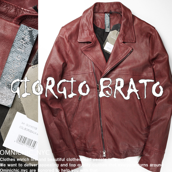 > ■新品17万【GIORGIO BRATO】ジョルジオ ブラット/一味違う上品なワイン色の光沢ライダースレザージャケット50/MADE IN ITALY/M程度/C990