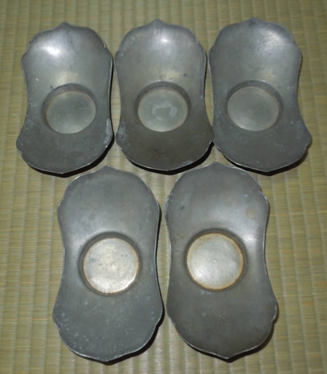 - 茶道具 錫・古錫 茶托 盛永興 洋點包換 五客 約463g