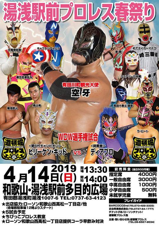 > 【道頓堀プロレス】ビリーケン・キッドvsディアブ【2019年4月14日・和歌山湯浅】