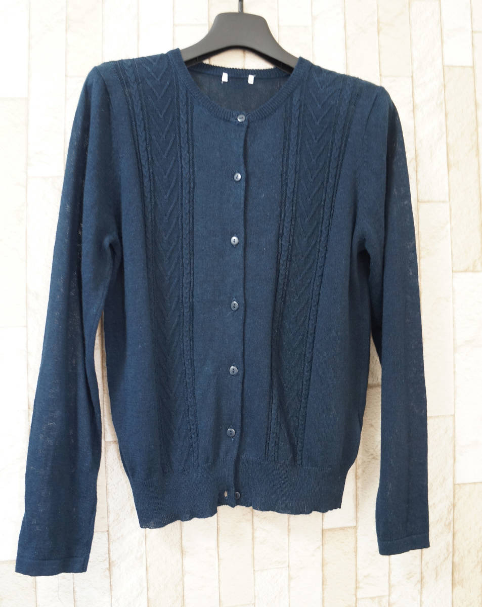 - ●難有/セール/カーディガン/綿麻/M/グリーン系/編み柄/レディース●f5942