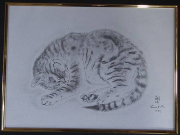 > 藤田嗣治、PASITHEA、猫の本より、サイン入り、希少な額装用画集より、新品高級額装付、状態良好、送料無料、mori