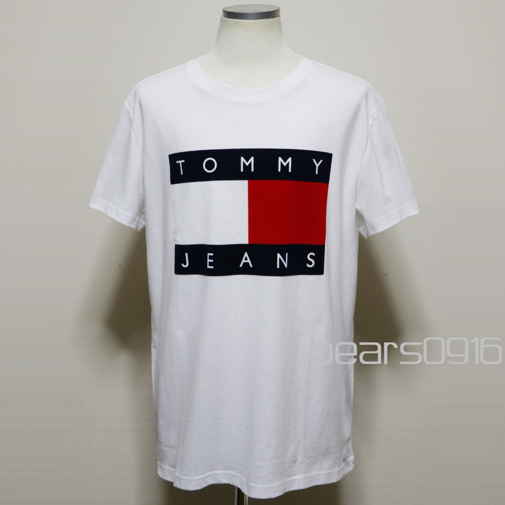 > 新品アメリカ購入品 TOMMY HILFIGER トミーフィルフィガー フロッキー角ロゴプリント 半袖Tシャツ 白XL