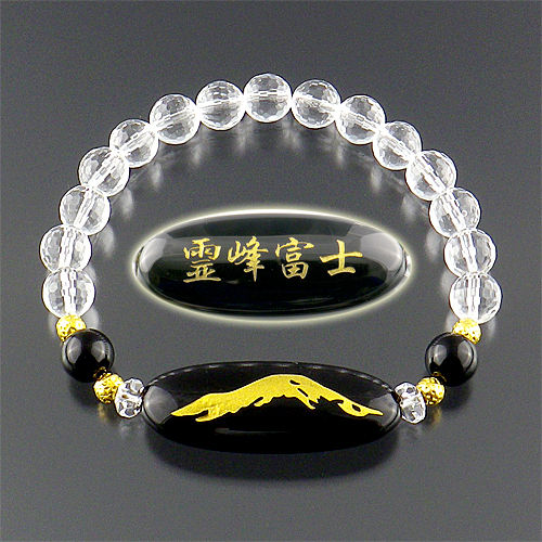 - ★お勧め★パワーストーン★不思議な霊力★開運★世界文化遺産★富士山★霊峰富士★ブレスレット★ブラックオニキスプレート&白水晶★