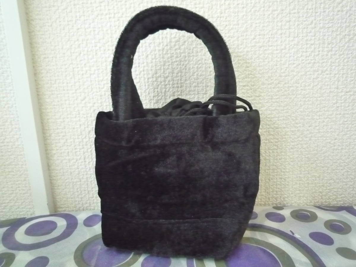 - ★ ベロア調 バケツ型 巾着 ミニ バック 黒