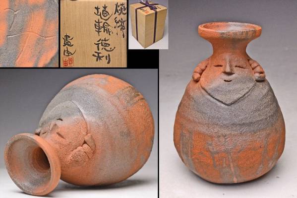 - 小山貴由 ★ 焼締埴輪徳利 ★ 共箱 ★ 独特のユーモア溢れる逸品 ★ 酒器
