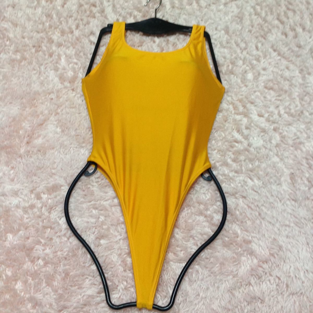- 超お値打ち出品 シンプルなデザイン 切れ込み鋭い Lady's 超ハイレグTバックレオタード Mサイズ イエロー used超美品