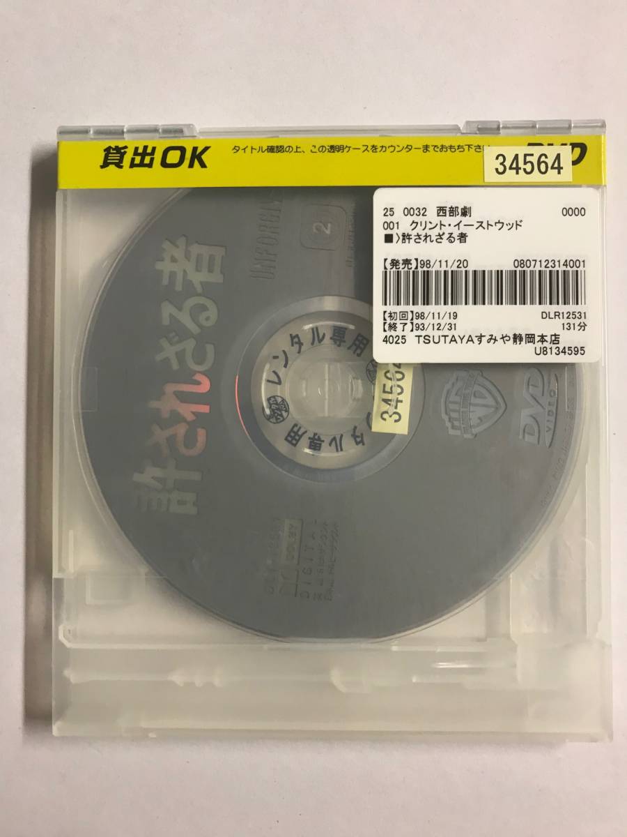 > 【DVD】許されざる者 クリント・イーストウッド【ディスクのみ】【レンタル落ち】@27-2