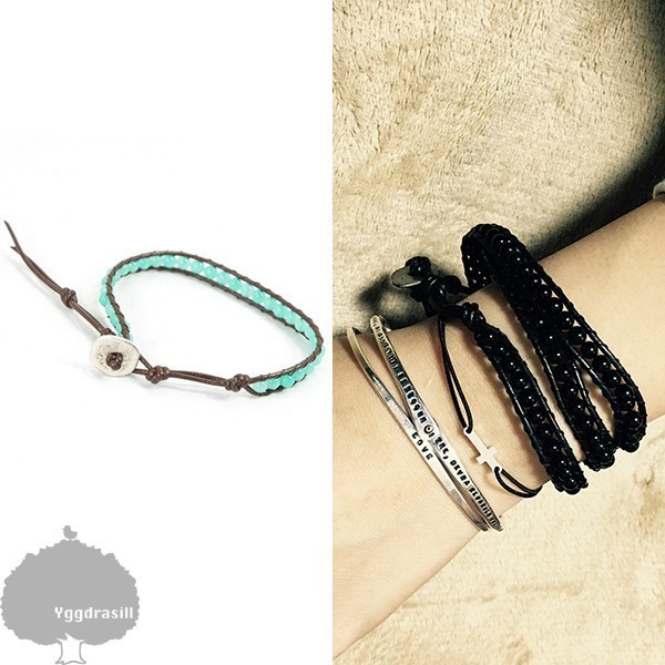- YGG■新品 1連 多重 ラップブレスレット ターコイズ×レザー 天然石 男女兼用 ハンドメイド アクセサリー