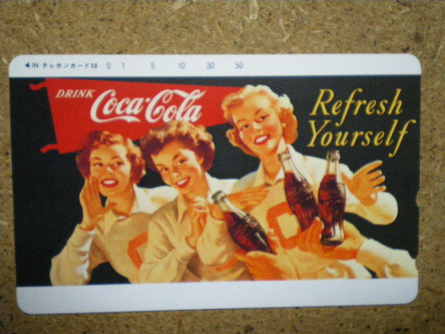 - cola・330-48185 コカコーラ 女性3人 未使用 50度数 テレカ