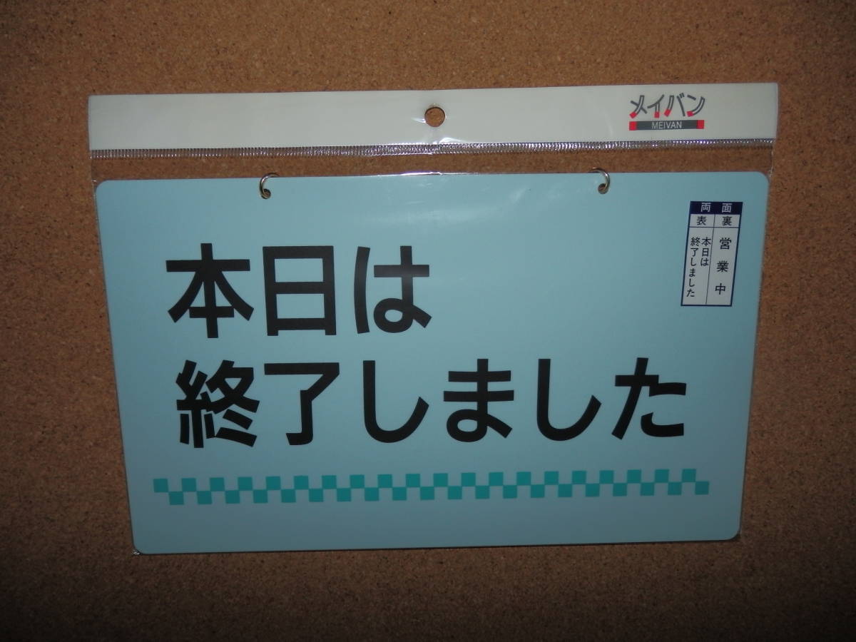 - ①保管品新品★メイバン 「本日は終了しました&営業中」 両面プレート ライトブルー