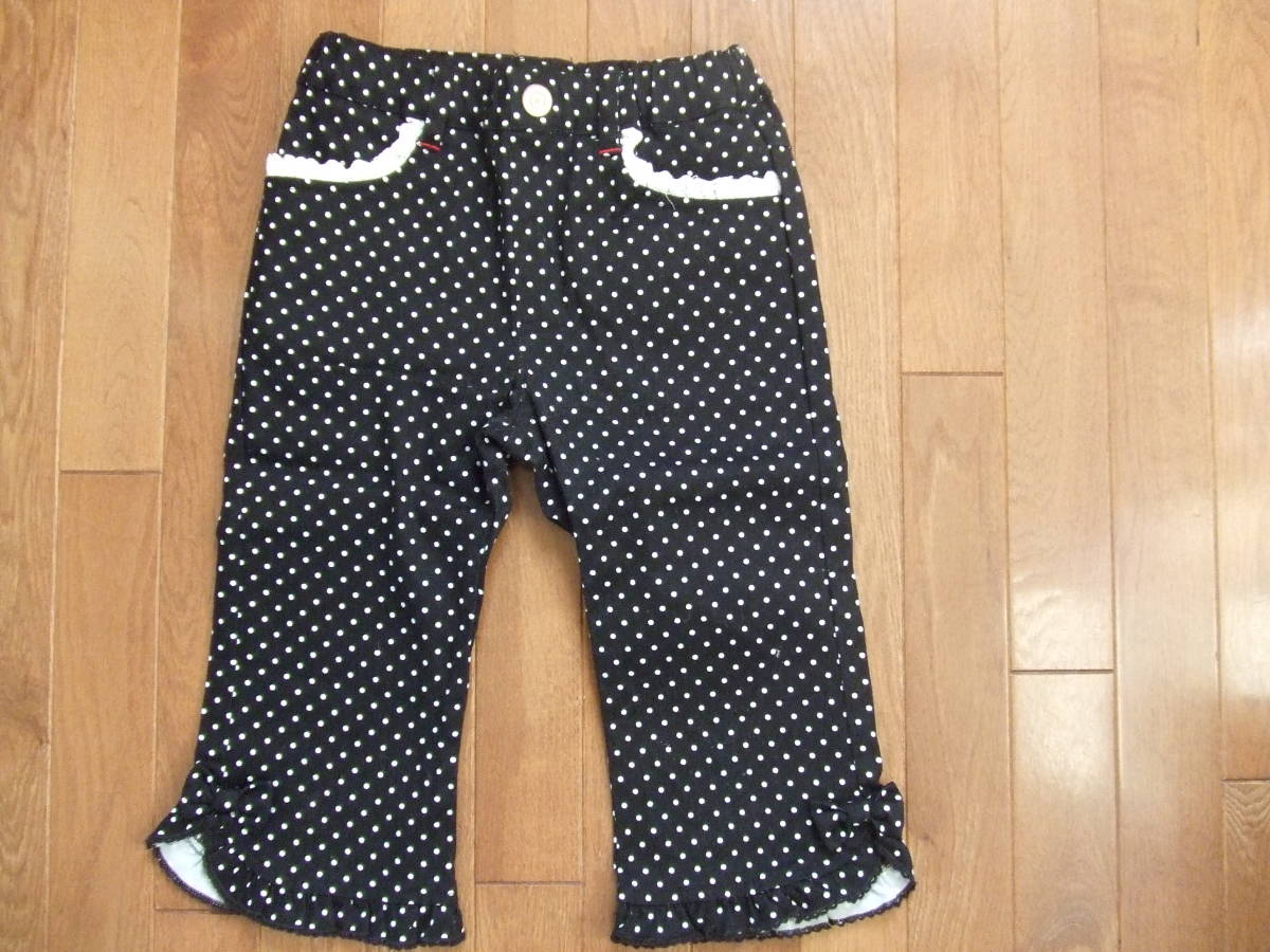 > HusHush*ハッシュアッシュ*120cm*美品*水玉*ドット*リボン*レース*フリル*パンツ*ウェストゴム*