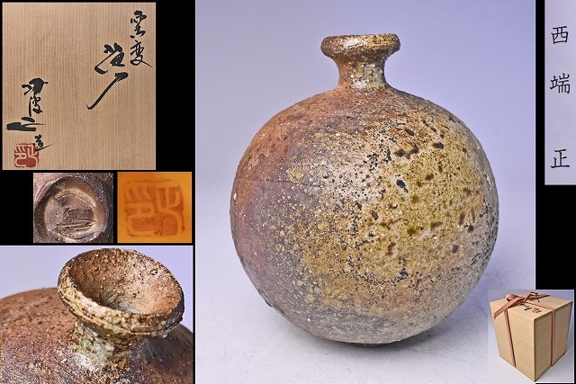 - 西端正 ★ 窯変花入 ★ 共箱共布栞 ★ 越前焼 ★ 焼〆壺 ★ 景色豊かな逸品 ★