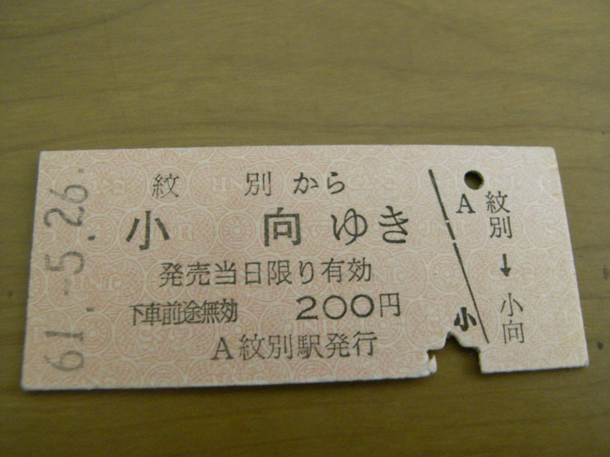 - 名寄本線 紋別から小向ゆき 200円 昭和61年5月26日 紋別駅発行