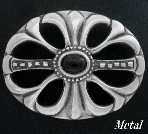 - 合金製バックル風クロス オニキス付 メタル コンチョ/レザークラフトのボタン飾りに