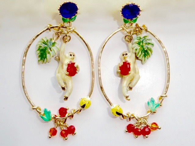 > ● フランス レネレイド ピアス 猿 てんとう虫 トロピカル 葉っぱ ラインストーン ビーズ 新品 N2 エヌドゥ パリ 人気ブランド ユニーク