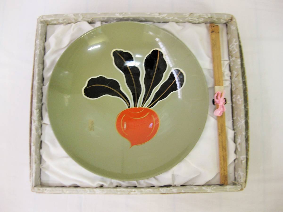 - 昭和レトロ 赤蕪 象嵌 皿 装飾皿 当時物 日本 非売品 竹箸 インテリア