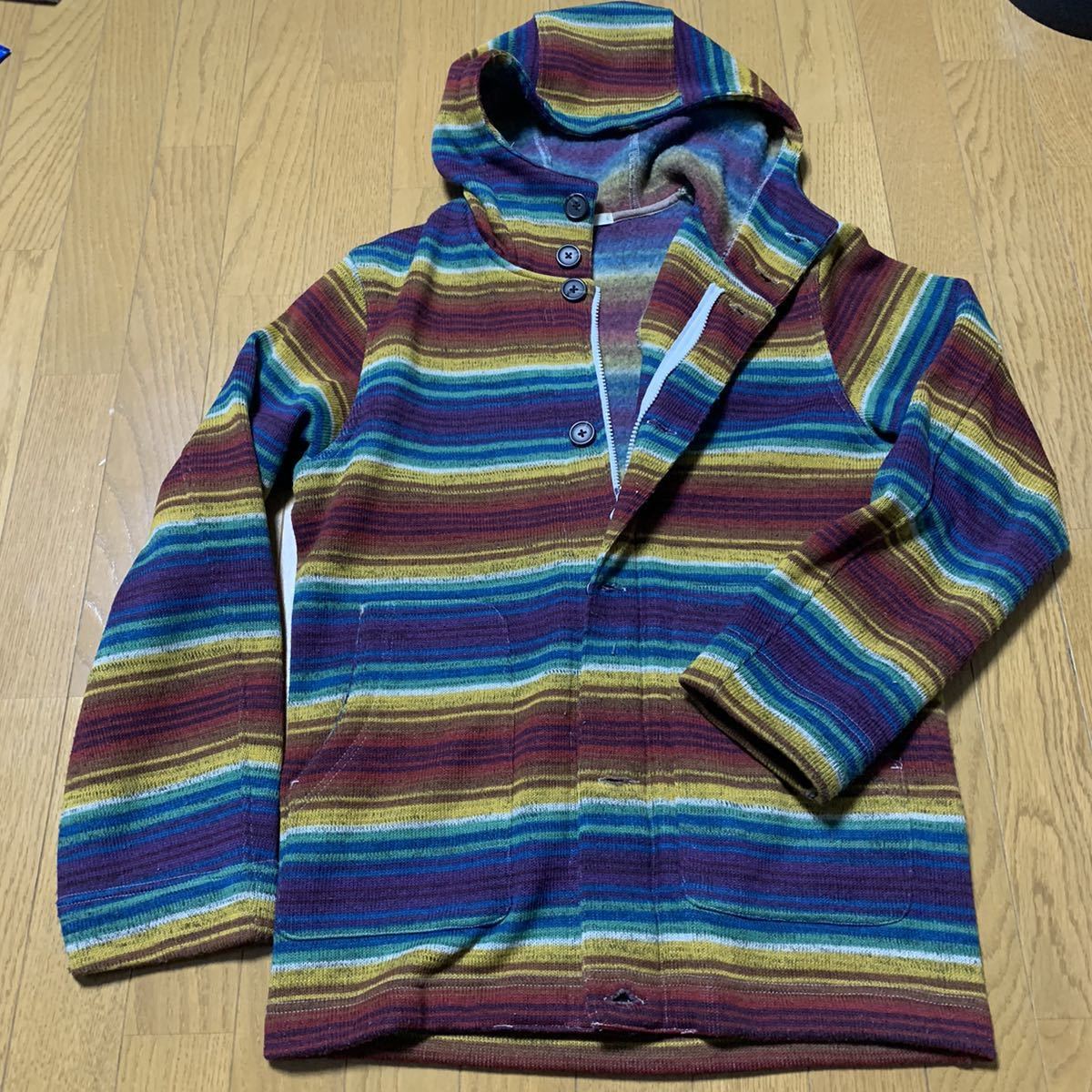 > ジーユー GU アウター マルチカラー ボーダー エスニック Lサイズ フーディー
