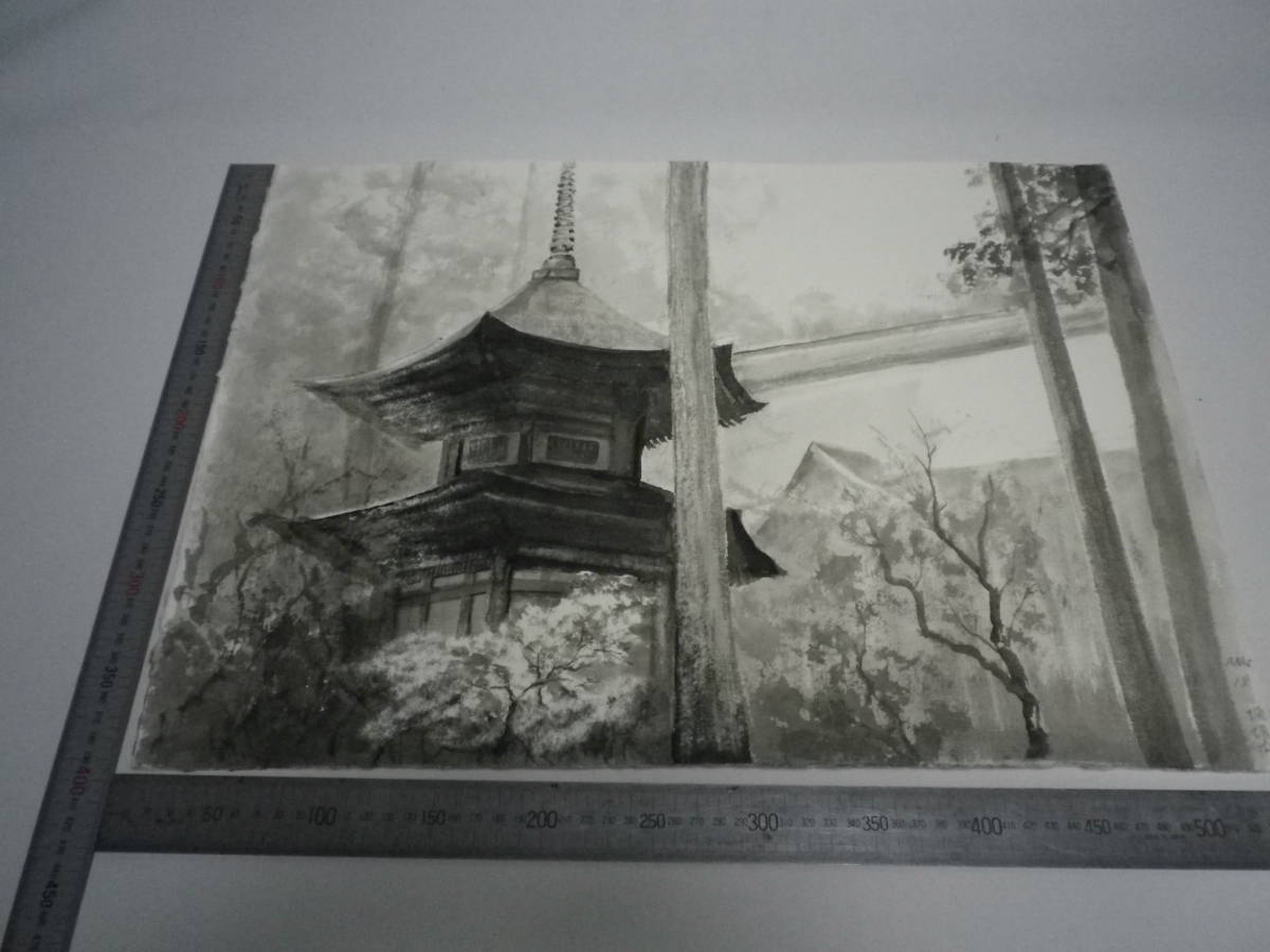 - 「古堂」水墨画【坂垣内 将泰】作者直筆原画「真作」P10号ハーネミューレ紙(経年保管品)【送料無料】00700072