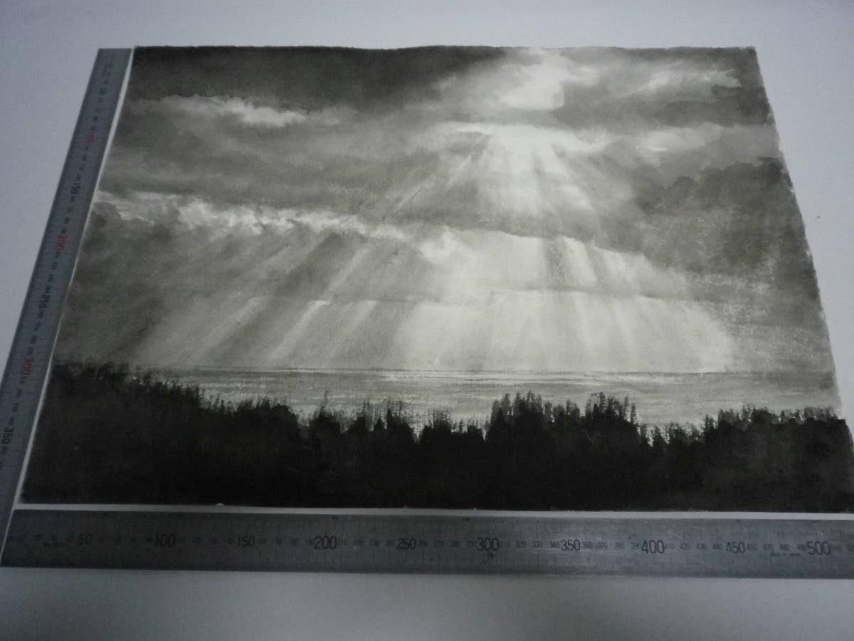 - 「雲間の光」水墨画【坂垣内 将泰】作者直筆原画「真作」P10号ハーネミューレ紙【裏面試描有】(経年保管品)【送料無料】00700137