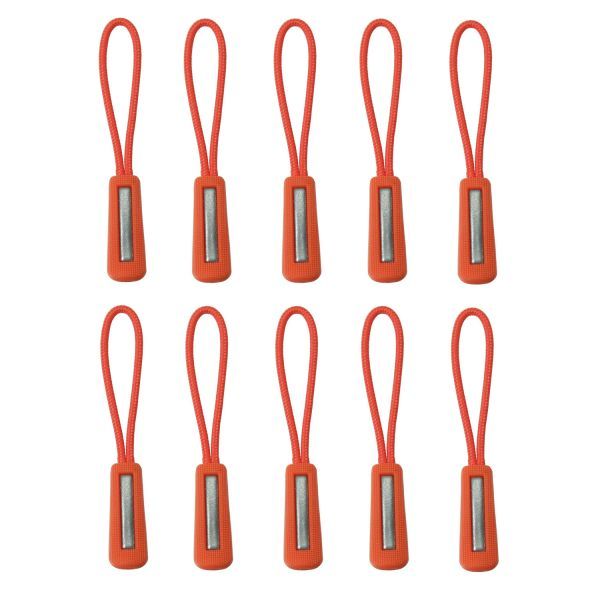 - ジッパープル 反射材付き ファスナー チャック 取り付け簡単 つかみやすい ノンスリップ ジッパータブ プルコード 10本セット (オレンジ)