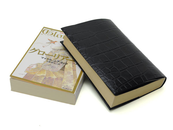 - 送料無料★お手入れいらずのリサイクルレザーで作ったブックカバー★厚めの文庫版 650ページ程度対応★クロコ型押しブラック