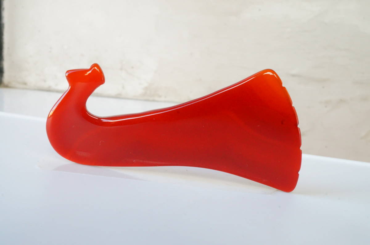 - 希少30年前の未使用在庫!上質赤瑪瑙・めのう・メノウ彫刻カービング「孔雀」ルース色合い彫が美しい!