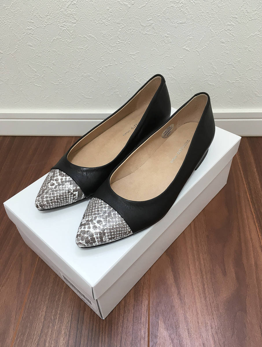 > 新品 ノイエディフュージョン 本革つま先コンビパンプス 21cm 21.0 黒 ポインテッド 牛革 パイソン 小さいサイズ SSサイズ neue diffusion