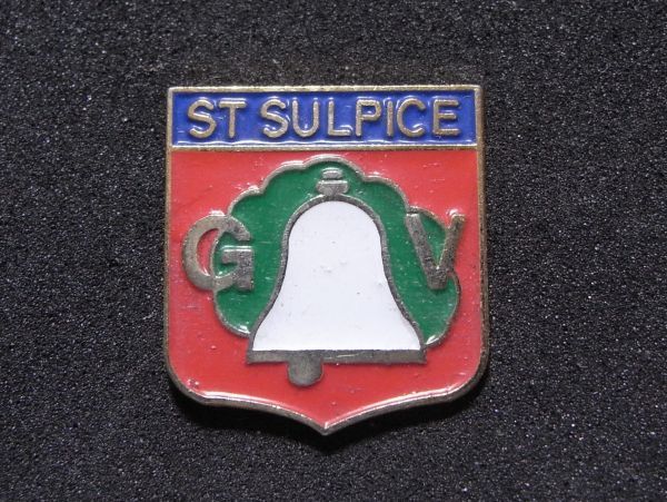 - フランスのピンズ: ST SULPICE 紋章 都市 白い鐘 エンブレム デザイン 雑貨 ピンバッジ Ya