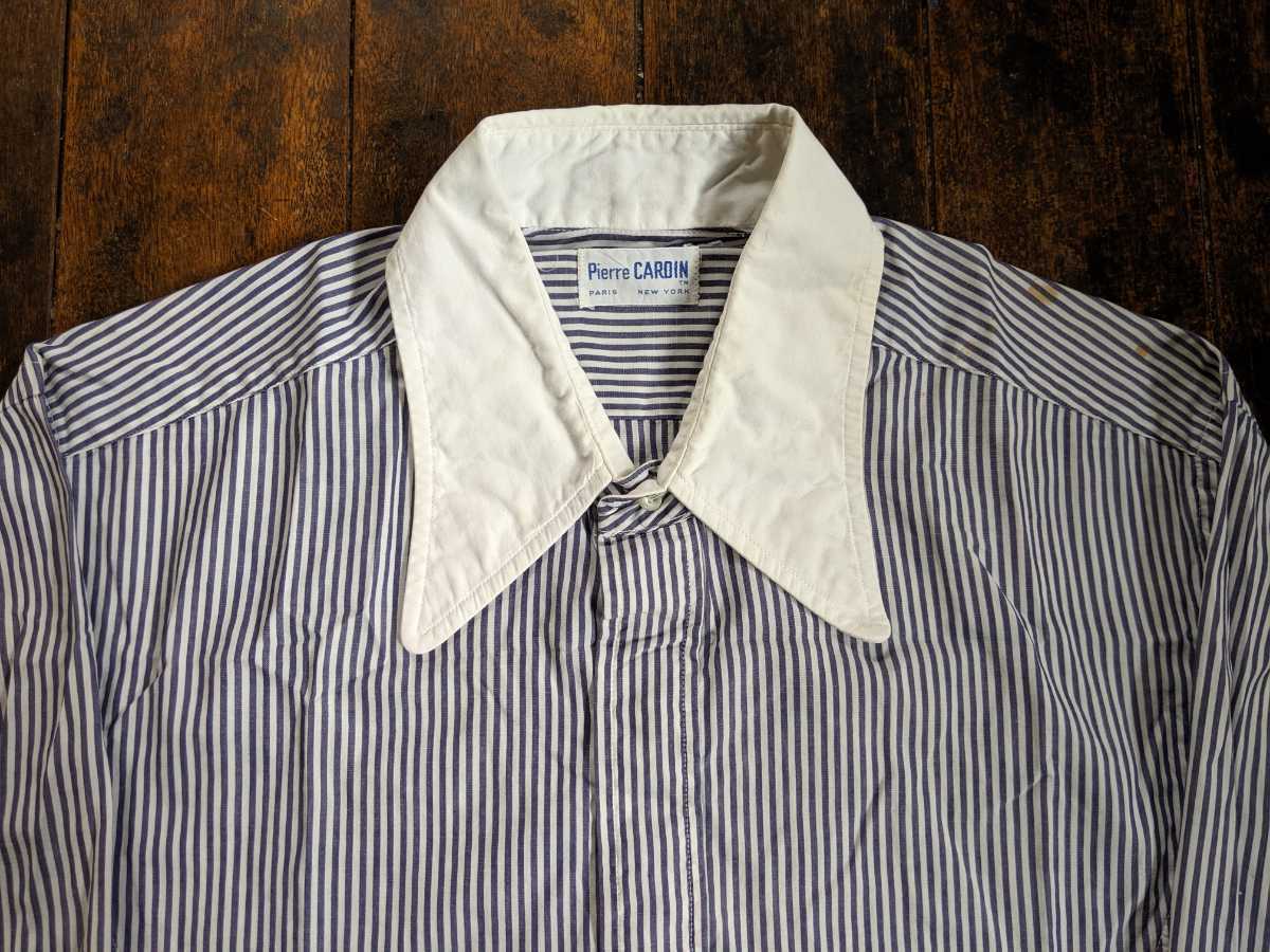 > ピエール カルダン★オールド pierrecardin クレリック ドレス シャツ ビンテージ ワーク ボックス ボタン メゾン クチュール プレタポルテ