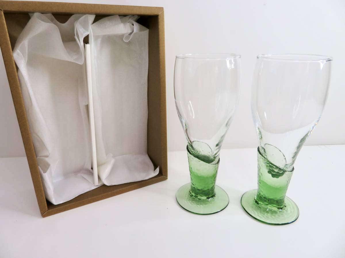 - ▲ペアグラス グリーン お洒落 2客セット 箱あり 未使用品 管理2005 S-8
