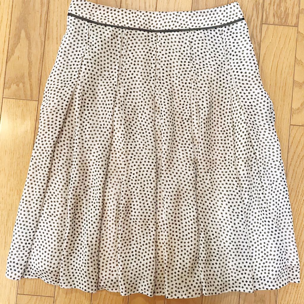 - C 美品 23区 オンワード樫山 ふんわりシフォンスカート 美揺れ効果 ひざ丈スカート サイズ38 M相当 茶系 四角ドット 春夏向け