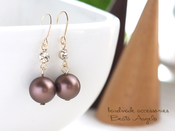 - ◆◆+angelo+スワロフスキー パールとラインストーンのピアス(p-152)ヴェルヴェットブラウン G rs001