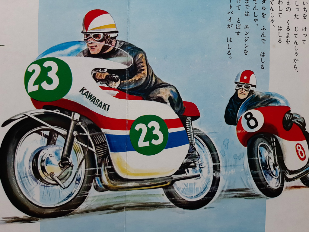 - カワサキレーサー オートバイ 当時物 こども のりもの絵本 えほん 状態良好 未読品!☆ Kawasaki A1R トヨペットクラウン ヘリコプター