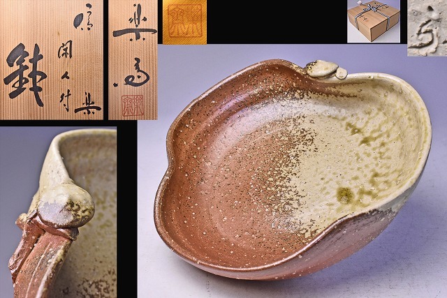 - 高橋楽斎 ★ 信楽閑人付鉢 ★ 共箱 共布 ★ 菓子鉢 ★ 茶道具 ★ 景色の良い逸品 ★