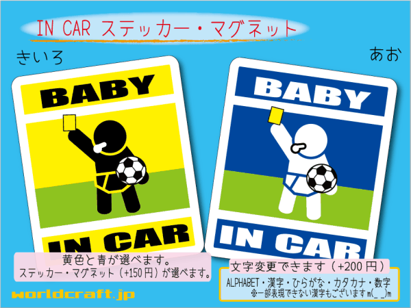 > ■BABY IN CARステッカーサッカー! 審判イエローカード バージョン☆赤ちゃん ベビー 車に乗ってます かわいいシール マグネット選択可能☆
